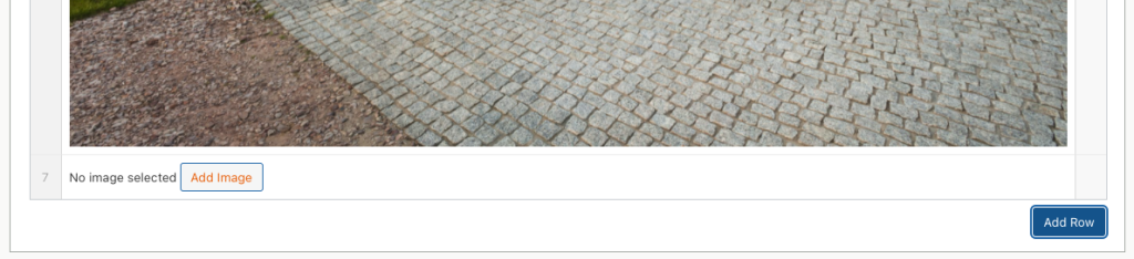 Je kan nieuwe foto’s toevoegen door onderaan bij de afbeeldingen op ‘add row’ te klikken. Hierna komt er een nieuwe regel bij, waar het mogelijk is een afbeelding te uploaden of te kiezen. Wanneer je de afbeelding hebt geüpload of geselecteerd kan je deze nog bewerken (Edit image) voordat je op select drukt (blauwe knop)