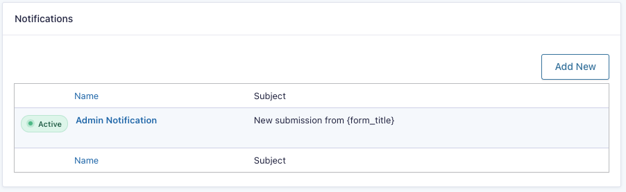 Wanneer je hier op hebt geklikt krijg je een nieuwe pagina te zien. Hierin staan notificaties die ingesteld staan. Standaard zien we ‘Admin Notification’ staan.