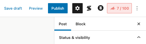 Je kan per pagina de SEO aanpassen. Ga hiervoor naar het bewerken van een pagina en vind rechtsboven in een blok (groen, geel of rood) met hierin cijfers [xx/100].